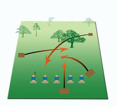 Typical five stand targets are a rabbit, chandelle, overhead, standard skeet high house and low house shots, teal (launched straight up into the air), trap (straight ahead from ground level), and an incoming bird.